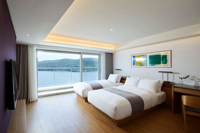 - 패밀리 트윈 : 최대 투숙 4인 (엑스트라 베드 추가 시 최대 5인 이용 가능) / 더블+더블 / 발코니 / 44㎡
